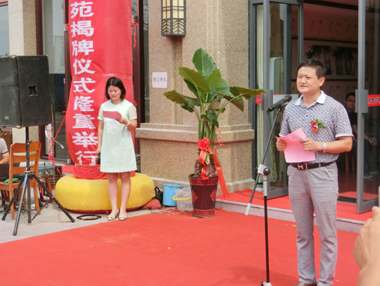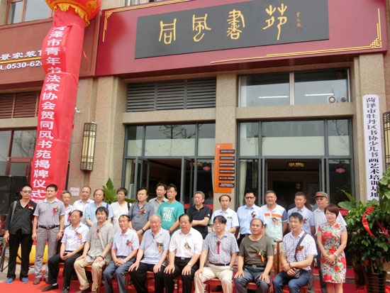 6月30日,正值95华诞之际,曹州又一家大型书画场所--”同风书苑”,在万家新城隆重揭牌。牡丹区政协崔明山、副赵奎明、区直有关部门负责人,菏泽市及牡丹区书法家协会、美术家协会,原市人大常委会主任于法杰、秘书长李顺广,菏泽书法家、美术家共计200余人参加了揭牌开业仪式。