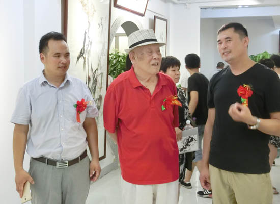 田立(右)与书法家谢孔宾先生和名人缘书画艺术馆负责人班瑞全