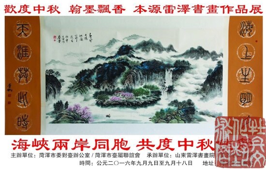 为共度中秋佳节,增强海峡两岸同胞联谊,由菏泽市委对台办、菏泽市台属联谊会主办,山东雷泽书画院、菏泽市图书馆承办的山东雷泽书画院立院三周年优秀作品展,将于9月9日在菏泽市图书馆开幕,将为中秋佳节平添一道靓丽的风采。