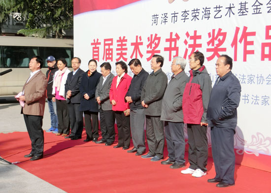 10月30日,首届李荣海艺术基金会美术奖、书法奖作品展在曹州书画院举办。全国政协常委、全国政协科教文卫体委员会副主任胡振民,省人大常委会原副主任时立军,中央数字电视书画频道董事局王平,省委宣传部副部长王红勇,省文联党组书记于钦彦,菏泽市政协刘勇,市委副书记李建华,市人大常委会副主任丁志刚出席开幕式。