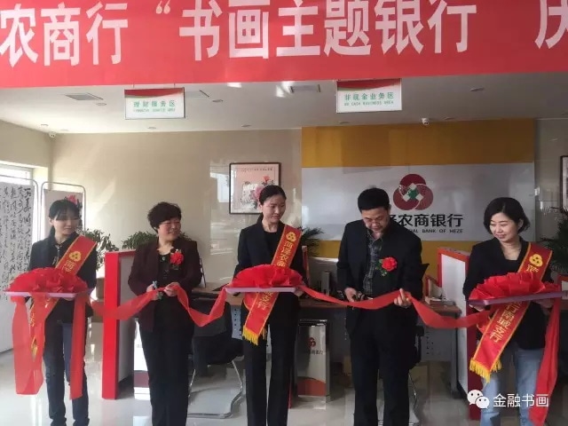 3月7日,菏泽“书画主题银行”庆“三八”书画精品展在菏泽农商银行南城支行开幕。菏泽市妇联副李荷玲与菏泽农商银行监事长赵玉龙一起为“书画主题银行”庆“三八”书画精品展剪彩。李荷玲提出几点希望:一要用党的十八大精神武装头脑,推动全市妇女工作再上新台阶;二要充分发挥妇女“半边天”作用,促进全市经济社会持续健康发展;三要充分利用好菏泽农商银行的“书画主题银行”这一交流平台,为我市省级文明城市创建、为全市妇女素质的提高做出新的、更大的贡献。菏泽农商银行监事长赵玉龙讲到:1月26日,“书画主题银行”成立以来,既增加了银行文化氛围,吸引了书画艺术家客户,又能为书画家提供书画展览和销售的服务功能,从而实现了银行与书画家的双赢。既符合现代银行细分客户群体营销需要,又为书画家提供了特色服务,还带来支行人脉资源的增加,使农商银行特色化、专业化服务的步伐进一步加快。举办菏泽“书画主题银行”书画精品展,为我市省级文明城市创建,增添了一抹亮丽的色彩。文化事业与银行业的融合,必将推动全市经济社会又好又快发展。