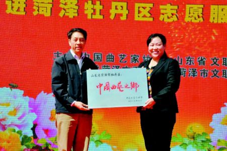 4月18日下午,牡丹区曲艺之乡授牌仪式暨曲艺牡丹奖艺术团“送欢笑”走进菏泽牡丹区志愿服务演出,在牡丹区委广场举行。牡丹区被曲艺家协会授予“曲艺之乡”,成为山东省首家获此称号的县区。