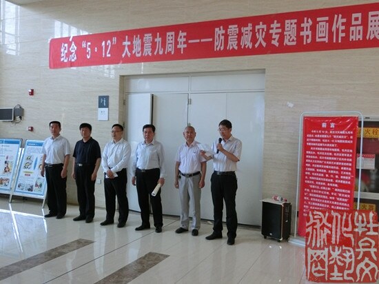5月12日,菏泽市地震局、牡丹区地震局、牡丹区文化馆、牡丹区青年美术家协会在菏泽市图书馆联合举办"纪念5.12大地震九周年――防震减灾专题书画作品展",百余幅作品参加展览。作品立意新颖,格调高雅,艺术特色鲜明,以独特的方式纪念5.12汶川地震九周年,旨在 让后人牢记灾难,铭记"防震减灾日",树牢“抗震设防”意识。市地震局局长王志玉、副局长晁岱清、牡丹区党组成员尹庆良和众多书画爱好者参加了纪念活动。