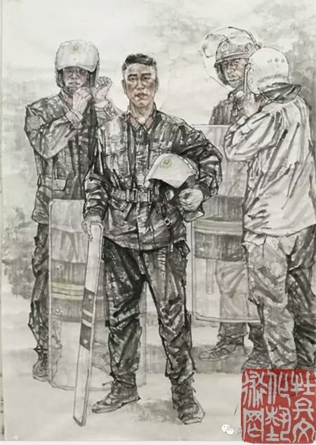7月28日,为迎接建军90周年,由菏泽市委宣传部、菏泽市武警支队、曹州书画院、菏泽市美协人物画艺委会主办,荣宝轩美术馆 、菏泽市画廊协会协办的 以“军魂”为主题的菏泽市庆祝建军90周年人物画展在曹州书画院举办。 从去年5月份以来市委宣传部组织曹州书画院、菏泽学院等单位,挑选六位人物画家:张研、张庆跃、仲蕾、张辉、姚改朝、李海莲,多次到武警支队一线,观摩战士训练、实战表演,学习模范先进事迹,进行实地写生、搜集大量的创作素材。通过一年的努力,创作出一百余幅代表武警精神的人物画作品。