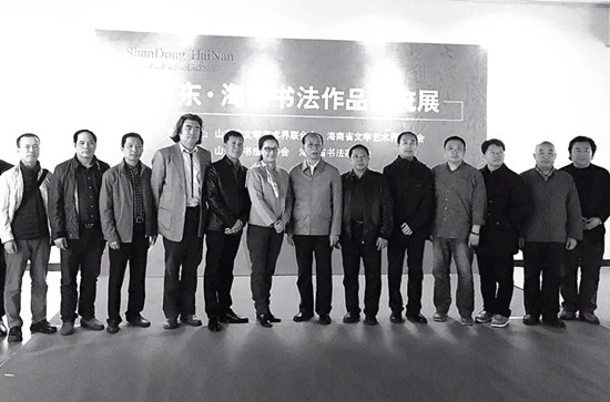 12月22日,由山东省文联、海南省文联主办,山东省书协、海南省书协承办的山东·海南书法交流展在海口开幕。海南方面出席活动的领导和嘉宾有:海南省法学会会长肖若海,海南省文联作协党组书记、海南省文联孙苏,书协副、海南省书协吴东民,书协理事、海南省文联副、海南省书协副兼秘书长陈洪,海南省文联副、海南省美协副兼秘书长阮江华,海南省书协副苏文殷、杨文修、刘强、陈鸿诚以及海南省各市县书协负责人;山东方面出席活动的领导和嘉宾有:书协理事、山东省书协常务副兼秘书长孟鸿声,山东省书协副王瑞、纪君、曹钰,山东省书协团委员邹方臣,山东省书协办公室主任李云,山东省书协组联部主任刘秀华,山东省书协研究部副主任陶玲玲等。