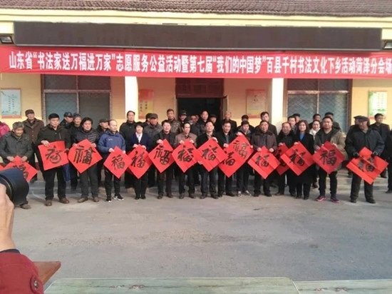 12月29日,第七届“我们的梦”百县千村书法文化下乡活动菏泽分会场启动仪式在定陶区仿山镇举行。为深入贯彻落实党的十九大精神和系列重要讲话精神,根据中宣部、文联“送欢乐、下基层”志愿服务工作安排和书协《关于2018年元旦、春节期间开展“书法家送万福进万家”志愿服务公益活动的通知》有关精神,进一步落实山东省委、省经济文化强省战略和省委宣传部“三个一切”活动宗旨,按照山东省书法家协会统一部署,山东省书法家协会“书法家送万福进万家”志愿服务公益活动暨第七届“我们的梦”百县千村书法文化下乡活动菏泽分会场启动仪式和系列文化惠民活动在定陶区仿山镇举行。