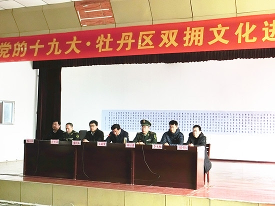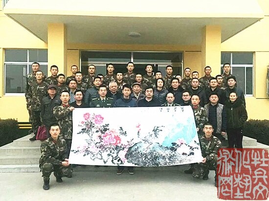 1月18日下午,共青团牡丹区委、牡丹区民政局、牡丹区文体局、牡丹区广播电视台、牡丹区双拥办主办,牡丹区文化馆、牡丹区青年美术家协会承办的“学习贯彻党的十九大-牡丹区双拥文化进军营”,走进菏泽武警支队练训基地,开展文化艺术进军营活动。书画家们现场挥毫泼墨,把丰富多彩的40余幅文化艺术作品送到警营和武警官兵手中,丰富了军营文化生活,亲近了军民鱼水之情。