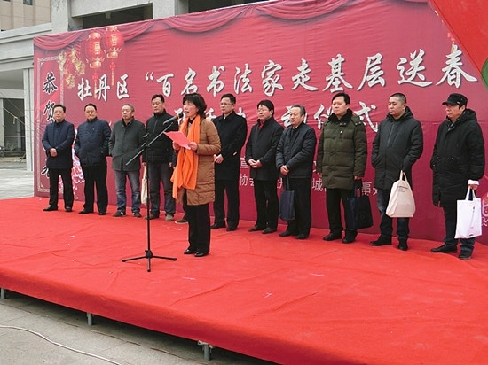 为切实开展好迎新春走基层、送欢乐下基层活动,以饱满热情和务实作风走进基层、走进群众,把温暖和欢乐送到基层、送给群众,1月18日上午,由牡丹区委宣传部、牡丹区文联等组织的“百名书法家走基层送春联” 活动启动仪式,在南城办事处隆重举行。牡丹区委常委、 宣传部部长王佳隽,牡丹区委宣传部副部长、文联张丽以及国家、省、市、区书法家协会会员和群众150余人参加了启动仪式。