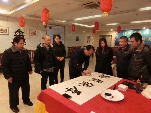 近日,知名画家黄松涛先生收徒仪式在菏泽明轩大酒店举行。仪式由国际联盟书画协会菏泽分会会长潘永记主持,新徒弟菏泽开发区实验小学美术教师韩波向师傅行鞠躬礼,师傅向徒弟赠送了书画工具。黄少民、李春华等书画家们现场挥毫泼墨,见证收徒成功。