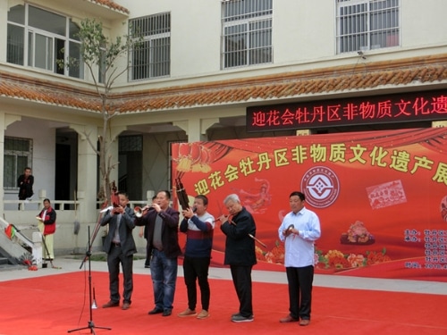 4月10日,牡丹区迎花会馆聘画家精品展暨非物质文化遗产展演,在牡丹区文化中心(区文化馆)同时开幕。馆聘书画家30余幅作品精彩亮相,特色各异,同时代表牡丹区非物质文化遗产的唢呐、武术、泥塑面塑、雕刻、剪纸等代表队展演了各自的绝活,给牡丹花会节日增添了靓点。