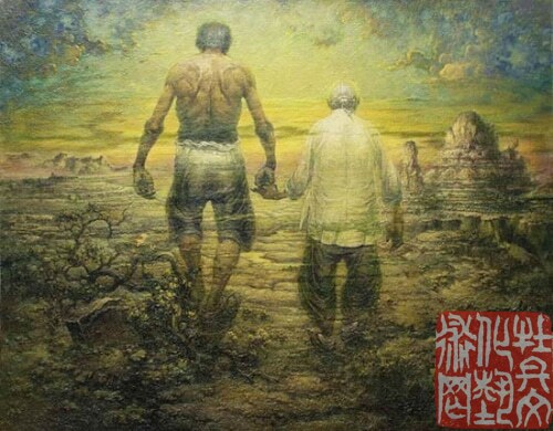 张瞰: 籍于山东省菏泽市,字子庸,号道瞰居士,民盟盟员。1988年考入浙江美术学院油画系,受教于马玉如、徐茫耀、金一德、秦大虎、全山石等画家。职业画家、业余发明家。代表作品有《韦驮天》、《千秋神武》、《中华龙》、《祖》、《江山》、《行者》、《调御丈夫》、《般若花雨》、《国脉》等。