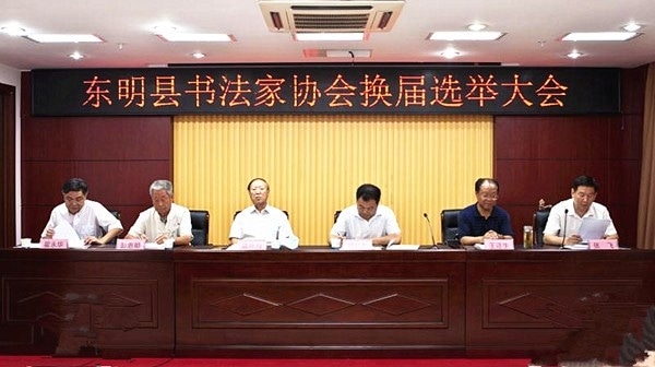 9月2号,东明县书法家协会换届选举大会在县委三楼会议室举行。会议由东明县文联副张飞主持,县委宣传部副部长郑红彪作重要讲话。会议通过了东明县第二届书协翟永华的工作报告,现场选举产生了第三届书协理事63人和第三届书协团;黄中航当选为第三届书协,李勍、毕红文、李银岭、孔德宇、张伟杰、唐保仓当选为副,秘书长由孔德宇兼任,副秘书长马兴彩、许凤修、姜国庆、刘学斌、王洪强、胡红生、段国夫、孙胜芳、耿进垒。 东明县2010年被书协正式命名为“书法之乡”,有着深厚的文化底蕴,人才荟萃。多年来,在县委、县领导和支持下,东明县的书法事业得到长足发展,书法队伍不断壮大,并涌现出一批很有成就的书法家和书法爱好者,一百二十余次入展、入选国家级展览并在全国及全省书法大赛中摘金夺银,这是东明书法界的骄傲,取得的成绩可喜可贺。相信东明县书协新的一届领导班子一定能团结带领广大书协会员,共同努力,充分发挥平台优势,勇于当担作为,结合新时代文明实践、文化传承、文化扶贫等重点工作,在送文化下乡、社会主义核心价值观宣传、移风易俗等活动中找到位置,发挥作用,把东明书法艺术事业推向一个新的历史高度,为东明文化发展做出新的更大贡献。