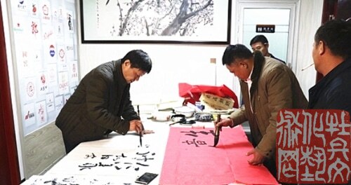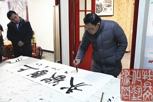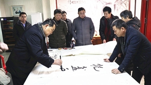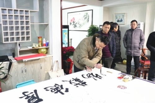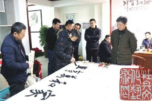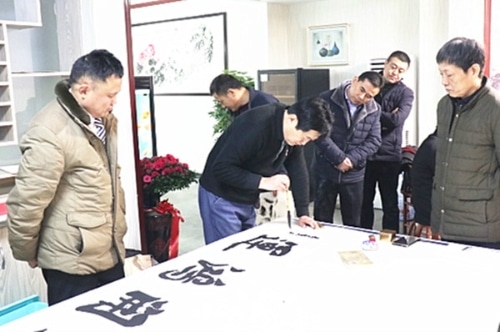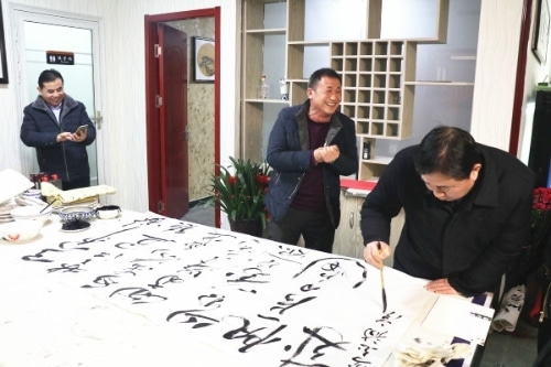 为筹建好县区榜书协会,农历正月初四日,菏泽榜书家协会组织菏泽部分知名书法家晋忠、谢健民、徐广征、鲁洪林、王跃真、方广运等,在曹县开展了一次文化书法交流活动。筹备中的曹县榜书家协会晋兴中、闫世强等也受邀参加。书法家们利用难得的节假时间,磋商艺术,交流思想,畅悟心得,挥洒自如,一幅幅行草、楷书作品跃然纸上,添靓活跃了愉快新春的节日气氛。