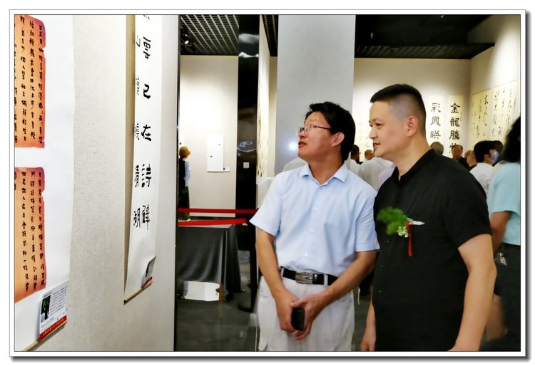 艺术研究院教授、文物鉴定家、书画家金申先生,菏泽市领导孙凤云和一些老领导杨成训 、温新月、张存金、潘建荣等, 菏泽市文联、曹州书画院、省市区教协会、省市书协、省市美协及书画爱好者共计200余人参加了开幕式。