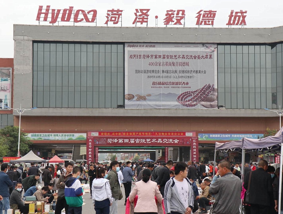 金秋十月,硕果累累,二0二0.大型古玩交流会 菏泽第四届古玩艺术品交流会今日在菏泽毅德城(菏泽牡丹古玩城)隆重开幕,来自广西、 陕西、山东、河南、安徽等省及济宁、临沂、商丘、开封、亳州等周边地区和菏泽七县三区的古玩爱好者8000余人参加了首日盛会,同时二0二0菏泽“毅德城杯”传统武术展演大会也为交流会助兴喝彩。活动将持续至10月5号。古玩爱好者对古玩陶瓷、杂项、玉器、铜器、竹木牙雕、历代古钱币、纪念章、烟标、邮票、票证、连环画、书画、宣传画、文革品、古籍、旧书、回流工艺品、老酒、老酒器、安徽灵璧石、花鸟鱼虫等进行了广泛的展示和交流。