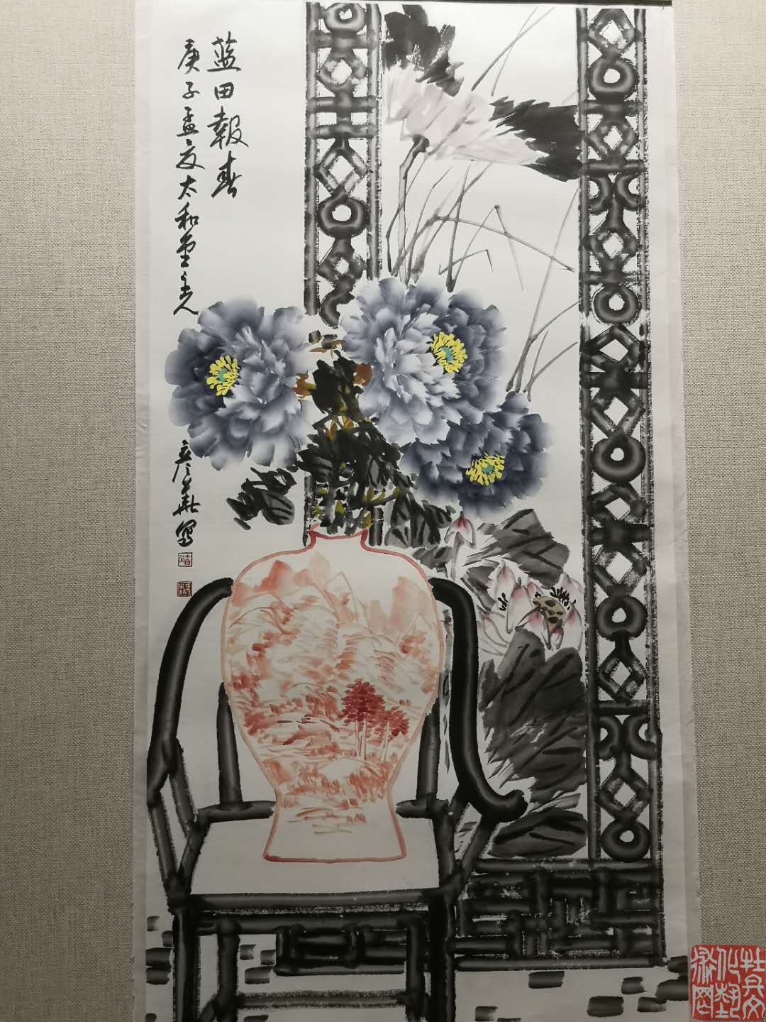 正值仲秋、国庆佳节,我们迎来了牡丹区美术家协会第三届美术作品展及侯彥华“青花牡丹系列”国画作品展。本次画展由区文联,区美协联合主办。并得到了区委宣传部领导的大力支持。淡淡墨香,彩笔传情,牡丹区美术家协会5年一届的全区美展散发着浓烈的芳香,为我区美术爱好者献上了一份艺术的盛宴,这次展览不仅是为了把好的美术作品展示出来,活跃我区文化生活氛围,更在于给我区美术爱好者提供一个交流学习的平台,引导我区人民更好地了解我国的传统艺术,培养青少年学习和欣赏艺术作品的兴趣,同时,也是对牡丹区美术家协会会员作品的一次检阅。于此同时,展出的还有侯彦华老师的“青花牡丹系列”个人展,两个展览同时展出,为我们增加了相互学习交流的好机会,这次区美协的作品展出,既有我区美术界老艺术家,也有新会员,可以说展出作品水平不断提高。 侯彦华老师个人的美术作品展,可以说标新立异,他以牡丹为创作主题,以青花瓷器装饰国花牡丹,突出室内景观,以菏泽的特产牡丹花为主,配上青花瓷瓶,老窗旧椅,创作格调上追求古色古香,意象心缘,其创作主题鲜明,构思巧妙,行成了个人独特风格,且集中创作的数量较多而无雷同,也是前所未有的。
