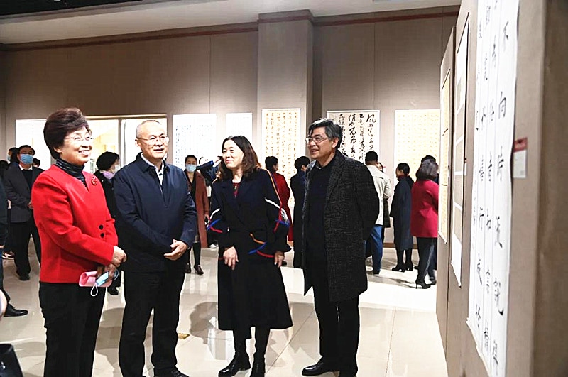 3月9日,由菏泽市文联、菏泽市妇联主办,菏泽市书法家协会和菏泽市图书馆承办,山东喜地实业有限公司协办的“花开盛世·庆祝成立100周年——‘巾帼墨韵’菏泽市首届妇女书法作品展”在市图书馆开幕,原市政协刘勇,市人大常委会副主任丁志刚,市副市长侯婕,市政协副付守明,以及市妇联王敏等市直有关部门负责人出席活动。市文联党组书记、田继雷主持开幕式。展览持续至3月19日。 市书协翟永华介绍书展情况,举办这次妇女书法专项展览,在菏泽尚属首次。本次征集活动共评出优秀作品10件、入展作品64件,同时邀请了谢玉涵、王跃真等6位女性书法家的作品,本次共展出我市80位女性书法家的精品力作。这些作品诸体兼备、格调高雅,充分彰显了我市女性书法家积极进取、求知求美的精神风貌和价值追求,传递出“妇女就是半边天”的时代新风尚。 获奖作者代表马艺璇发表感言。