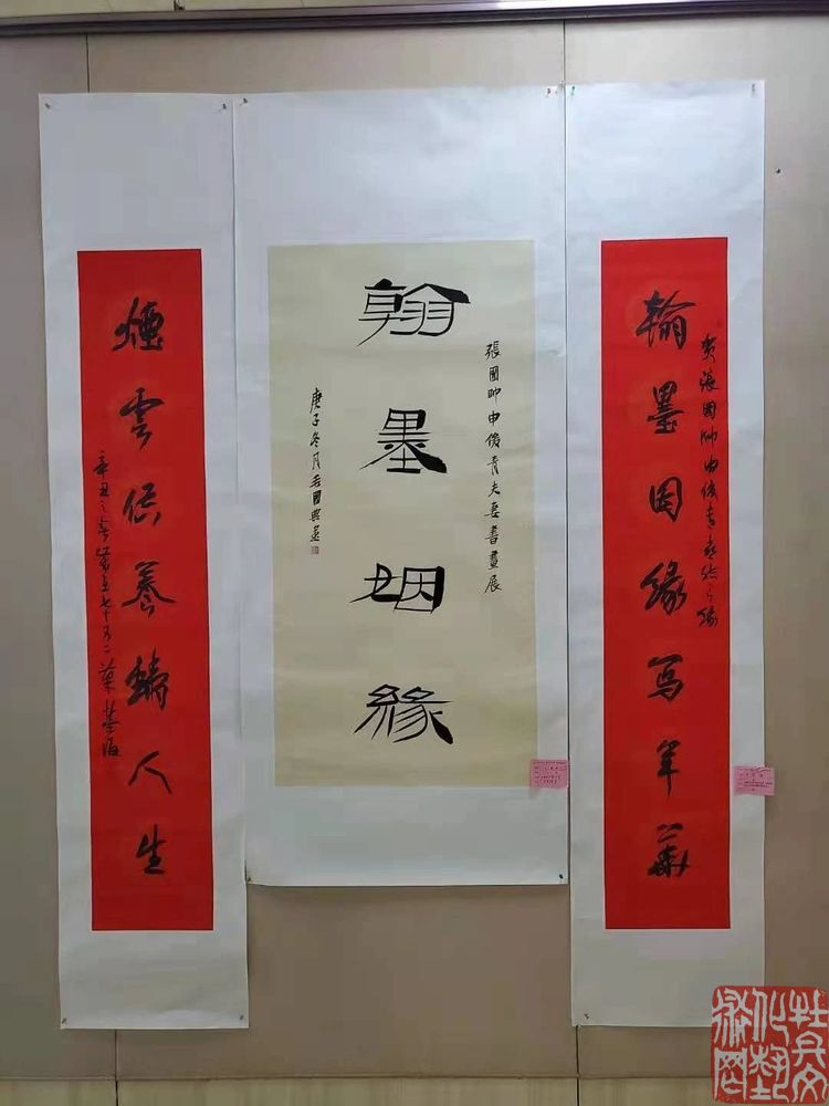 3月28日,成武县美术馆,一对新人以“翰墨因缘”书画作品展的形式,举办了一场与众不同的结婚仪式。