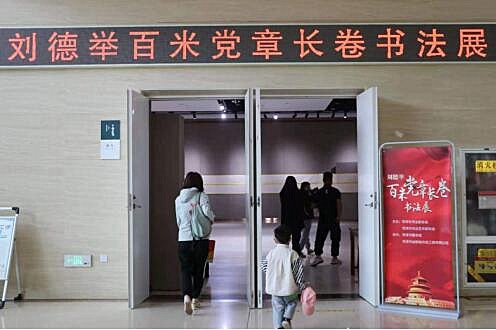 5月11日,为庆祝中书法展在菏泽市图书馆举行国成立一百周年,由菏泽市书协、菏泽市书法艺术研究会、菏泽市图书馆主办,菏泽市诚荣驰市政工程有限公司协办的刘德举书写百米展,在菏泽市图书馆举办,长约100米的瘦金体《共产程》手抄长卷气势恢宏,像长龙盘旋,格调高雅,清秀飘逸,韵味无穷。