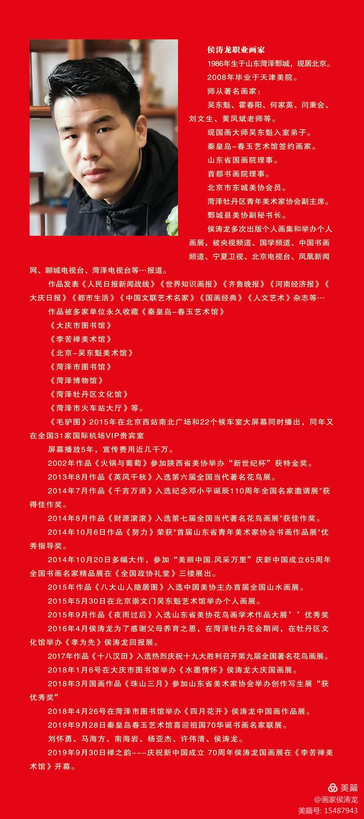 5月22日上午十点,侯涛龙画展将在菏泽博物馆开幕。