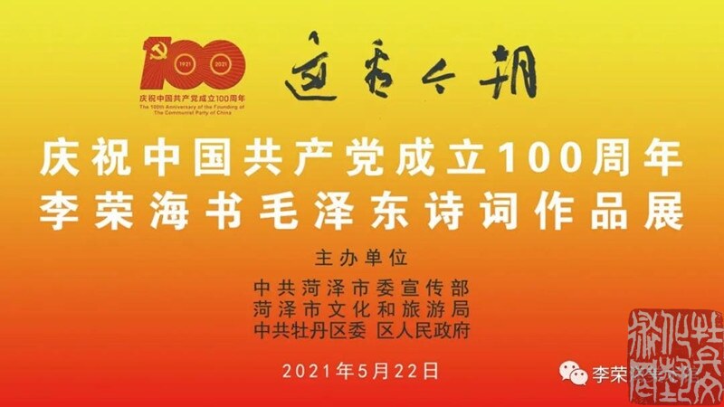 庆祝成立100周年,还看今朝-李荣海书诗词作品展,5月22日在菏泽市李荣海美术馆隆重开幕!