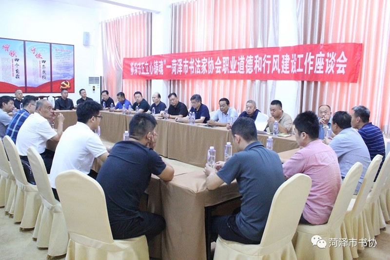 2021年9月16日,“修身守正 立心铸魂”菏泽市书法家协会职业道德和行风建设工作座谈会在杨湖酒庄召开,市书协团成员、秘书长,各县区书协、秘书长以及理事代表参加座谈会,市书协副兼秘书长鲁世杰主持会议,市书协翟永华作出讲话。