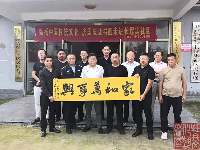 长堽集社区主要负责人李云飞和社区党委、居委会班子成员,以及部分社区居民参加了这次书画文化进社区活动。