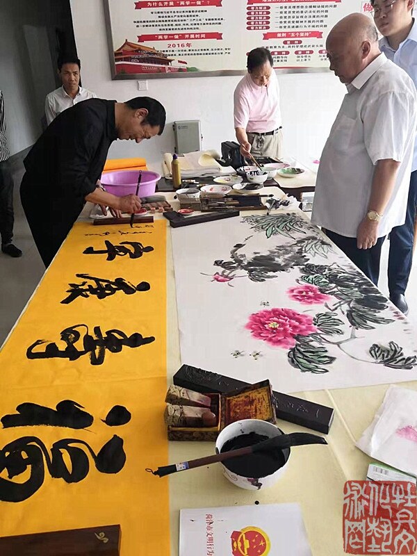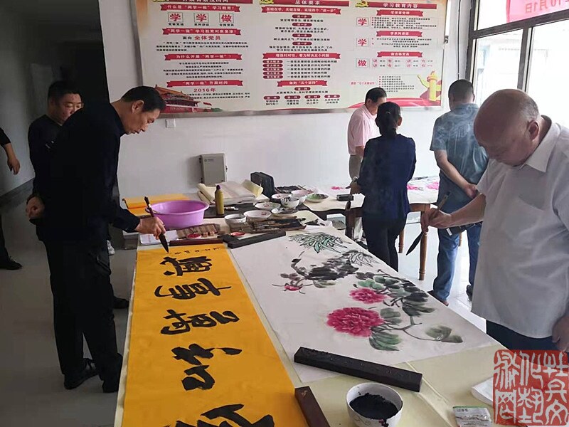 10月1日,为庆祝中华人民共和国建国72周年,菏泽部分知名书画家走进菏泽经济开发区佃户屯办事处长堽集社区,开展了迎国庆 弘扬传统文化联谊暨书画进社区活动,将书画艺术作品送到基层、送进社区,为国庆增添了浓厚的艺术氛围。工艺美术家协会会员郝春勇、工艺美术家协会会员桑贤文、书协会员、山东省书法家协会会员张建新、书协会员、菏泽市榜书家协会常务副刘中山、楹联学会会员晋兴中、阎世强等参加了书画交流活动。在活动现场,书画家们挥毫泼墨,先后创作书画作品100余幅,让基层群众近距离地感受到了文化的魅力。目的是以书画为载体,提升社区居民的文化品位,增强文化自信,用文化的力量构筑社区居民的美好家园,提升基层群众的获得感和幸福感。