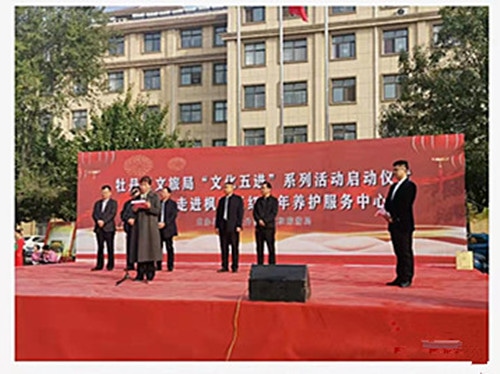 10月22日上午,2021牡丹区文化和旅游局“文化五进”系列活动启动仪式在枫叶正红老年养护服中心隆重举行。牡丹区文化和旅游局党组书记、局长张丽,党组副书记郝永刚、副局长王宏生、刘高显,牡丹区文化馆馆长杨文喜、大田集团党委副书记、集团副总邓如月出席了启动仪式。