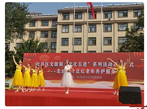 大田集团党委副书记、集团副总邓如月代表集团对大家的到来表示热烈的欢迎和衷心的感谢,牡丹区文化和旅游局党组书记、局长张丽发表了重要讲话,张局长指出, 2021年,是建党100周年,也是十四五开局之年,更是全面实施乡村振兴战略关键之年,为激发广大群众参与文化活动的热情,促进我区文化艺术繁荣发展,推动社会群众满意度不断提升,增强全区人民群众的文化获得感、幸福感。经牡丹区文化和旅游局党组研究,决定在全区开展“进社区”、“进军营”、“进校园”、“进企业”、“进养老院”文化五进系列活动,以送文化下乡的形式走进千家万户,为全区广大人民群众搭建文化活动平台,将群众喜爱、群众参与作为“文化五进”系列活动的核心理念和首要任务,通过搭建平台载体,组织发动全区群众积极投身文化活动中来,增强基层群众的文化获得感、幸福感。随后,牡丹区文化和旅游局“文化五进”系列活动走进枫叶正红老年养护服中心大型演出正式开始,整场演出共十三个节目,有独唱、合唱、舞蹈、歌伴舞、戏曲、曲艺等,演员志愿者还与老年朋友们进行了亲密互动。此次文艺演出活动内容丰富多彩,节目精彩绝伦,各个节目皆赢得满堂彩,台上演员用情、用心表演,台下老人掌声不断,欢快无比。演出开始前,在牡丹区文化和旅游局党组书记、局长张丽的带领下走进老人生活区,为老人们送上慰问品,给他们送去温馨的问候和美好的祝福。