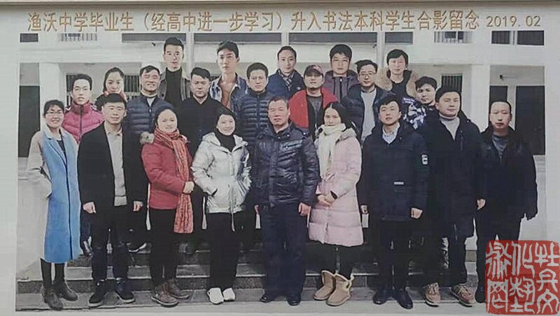 一份辛勤,一份收获。多年来,李银岭所启蒙的书法学生已有近30人书法本科毕业,其中张景霞同学首师大研究生毕业后,留在北京当了一名人民教师;赵瑞勇同学中央美院研究生毕业后,与其爱人一起在北京创办了一所培训学校;王先虎同学艺术研究院硕士毕业后,又考入了清华大学博士生,专门从事古文字研究。2019年春节时,这些学生相约一起来到渔沃中学,看望了为他们成长付出辛勤劳动的李银岭老师。这是他的成绩,也是他的骄傲与自豪。