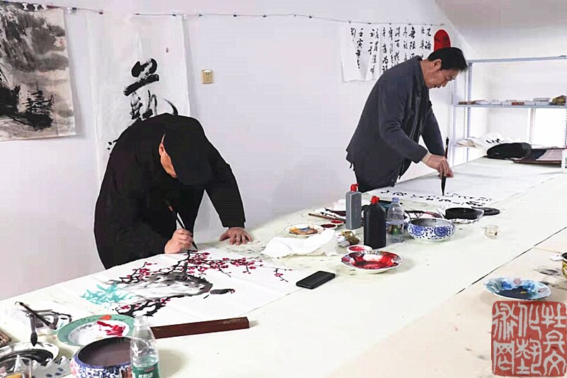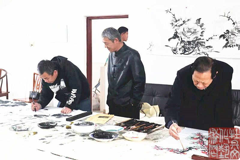 3月12日,全国“两会”刚闭幕,为进一步落实全国两会文化精神,弘扬优秀传统文化,传承中华书画之美,菏泽龙山书画院即邀请了菏泽知名书画家 工艺美术家协会会员郝春勇、工艺美术家协会会员桑贤文、书法协会会员、山东省书法家协会会员张建新、书法协会会员、菏泽市榜书家协会常务副、龙山书画院常务副院长刘中山、书画家协会理事、一级美术师黄松涛、书画家协会会员崔新峰、闫世强等,在武屯路龙山书画院举行了笔会和书画交流活动。在活动现场,书画家们畅谈两会文化新精神,相互磋商书画艺术,交流文化新思想,畅悟心得,抒感,各展特长,挥洒自如,纷纷挥毫泼墨,先后创作书画作品60余幅,以实际行动深刻领会两会书画文化精神,增进了书画家们取长补短、共同提高、协同进步的友谊。