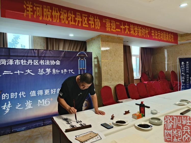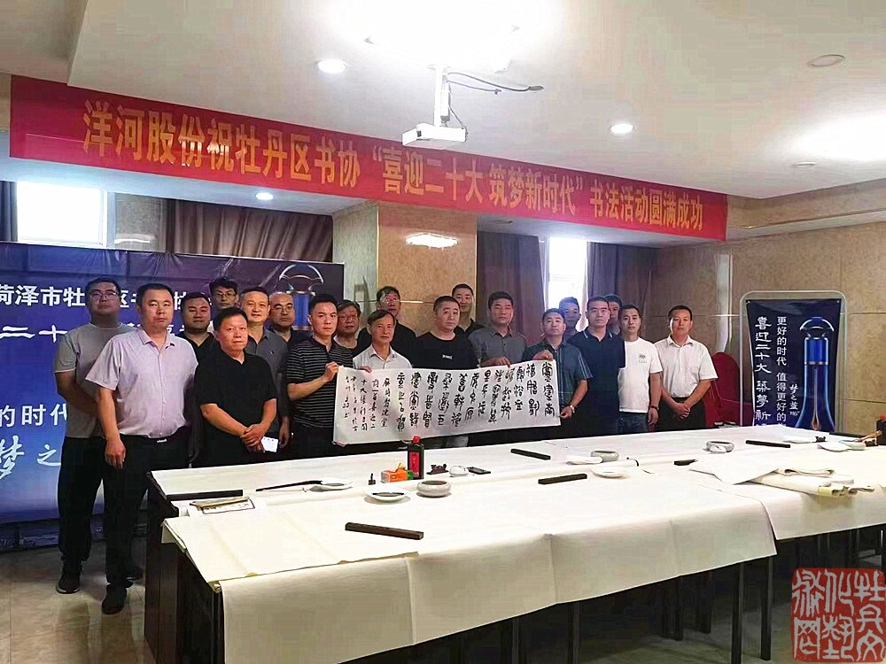 2022年7月20日上午 ,菏泽市牡丹区书法家协会“喜迎二十大 筑梦新时代”书法笔会,在菏泽市牡丹区区委党校党建会议室举行,牡丹区书协成文政,副:陈涛、孙存良、张爱国、鹿心校、崔文利、肖建鹏、刘庆华,副秘书长肖清顺等参加了活动,山东省书法家协会副曹钰先生为笔会题字并出席活动,牡丹区文联冯兴旺副莅临 现场指导工作。