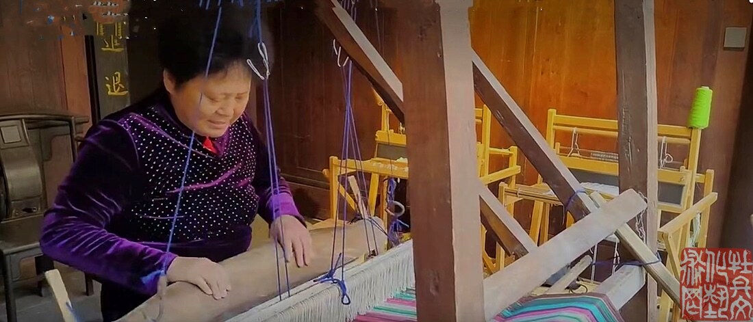 据牡丹区区级非遗项目红英鲁锦纺织技艺传承人 邓红英 介绍,鲁锦是山东西南部独有的民间手工纯棉提花织布,即用染色棉线按照设计好的经纬,手工织成带有几何图案的面料。鲁锦图案精致古雅,色彩绚丽,细密耐用,具有浓郁的地方特色和鲜明的民族特色,在国内外享有盛誉。鲁锦织造技艺从采棉纺线到上机织布要经过七十二道工序,正是这些复杂的劳动,使鲁锦具备了珍贵的工艺价值。