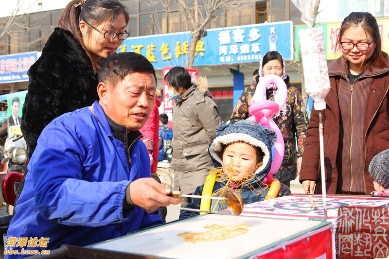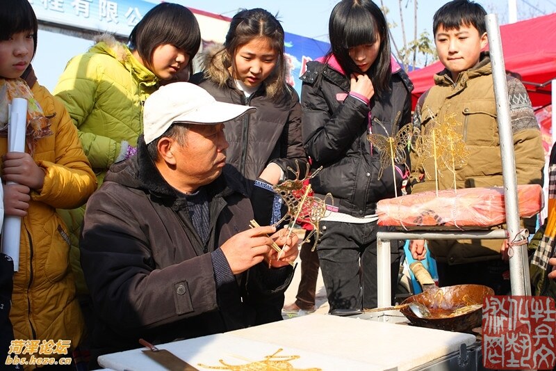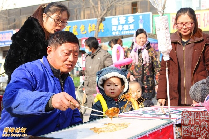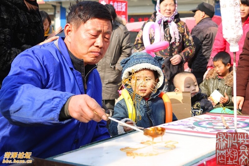 熬制,熬到可以牵丝时即可以用来浇铸造型了。在绘制造型时,由艺人用小汤勺舀起溶化了的糖汁,在石板上飞快地来回浇铸,画出造型,民间艺人的手上功夫便是造型的关键。当造型完成后,随即用小