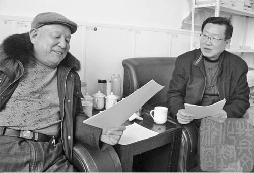 黄河水神民俗两位传承人彭忠(左)和樊庆堂(右)