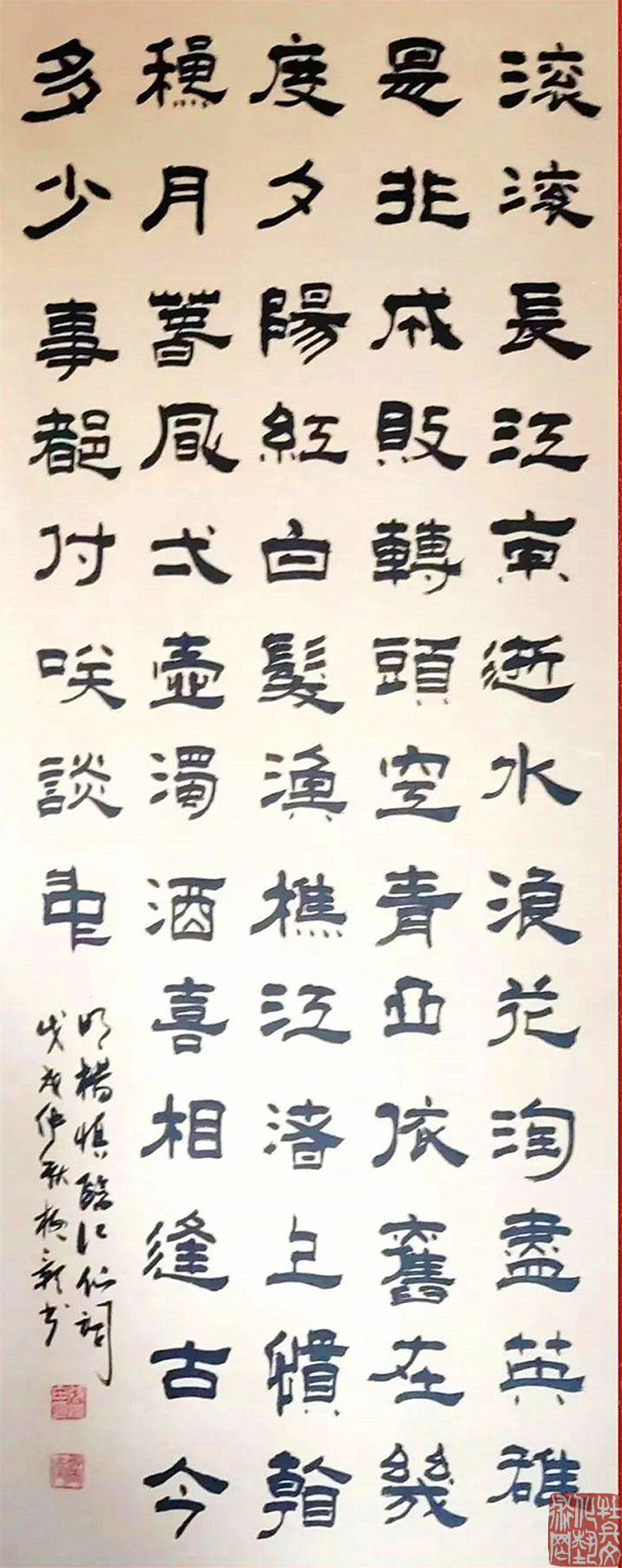 张继田先生写篆书,非常在意笔墨的书写效果。取法譯山碑,碧落碑等,却不仅仅反馈回来碑字的立骨精神,还通过精研勤思表现出笔墨书写的传神魅力!形神兼备,尤其贵于神!字字有跃、腾、奔、卧的人格姿态,让书法完完全全回归到了艺术的界域之内。