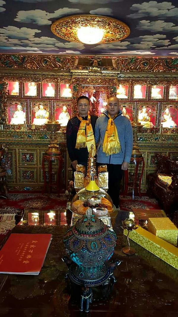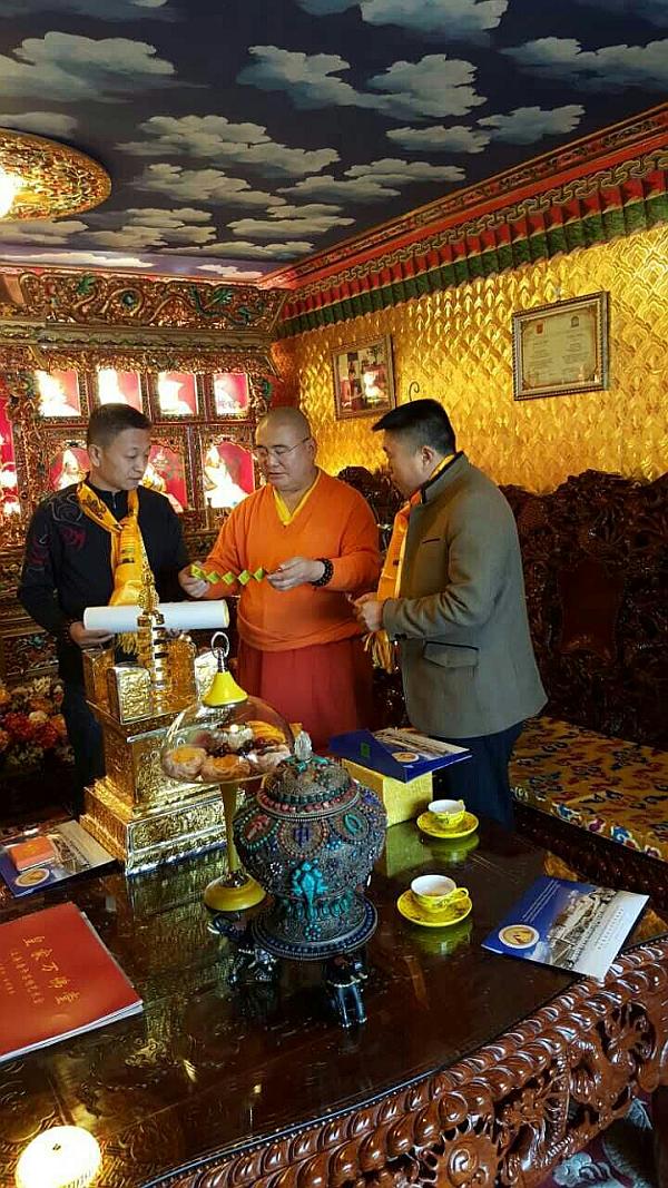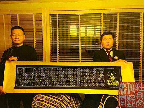 蒙古国活佛金刚法王,为答谢书法家肖旭东为其名作《八字经》书写的小楷长卷,长15米,宽35厘米,在日内瓦联合国万国宫展示并收藏。11月21日上午在北京万佛堂召见肖旭东一行,并赠送水晶法王头像 以示留念。
