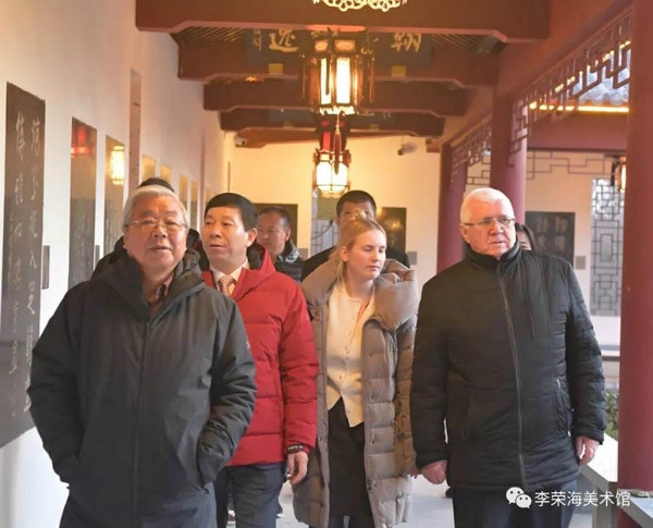 2018年12月18日,白俄罗斯前高委员会库兹涅佐夫先生,白俄罗斯文化联盟副国沙先生,文化联盟秘书笑怡女士,白俄罗斯首席代表刘瀚锴先生一行专程来一一山东省菏泽市参观菏泽市李荣海美术馆,并达成白俄罗斯文化联盟与菏泽市李荣海美术馆建立文化交流合作意向书,于美术馆国色大厅举行签约仪式,菏泽市党组成员鲁志成与白俄罗斯文化联盟副国沙先生分别签字,牡丹区区委书记张福龙向白俄罗斯文化联盟赠送李荣海先生书写的“中白友谊,万古流长”,前库兹涅佐夫先生接受赠送,李荣海先生、西班牙华侨王永林先生,卢银军先生和美术馆工作人员等参加签约仪式。